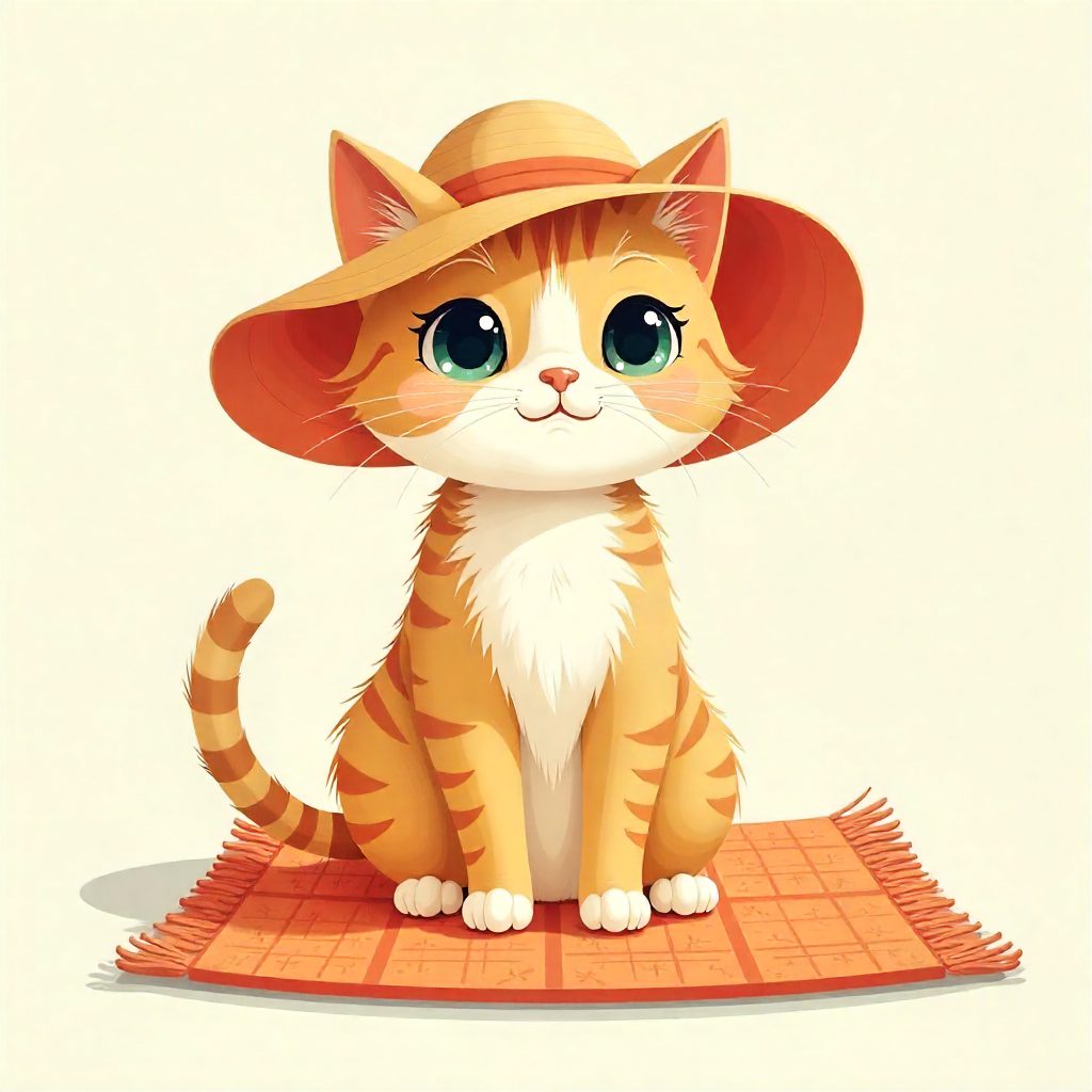The cat had a big hat.